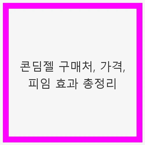 - 콘딤젤은 어디서 구매할 수 있나요? 콘딤젤은 일반적으로 온라인 쇼핑몰이나 약국에서 구매할 수 있습니다.